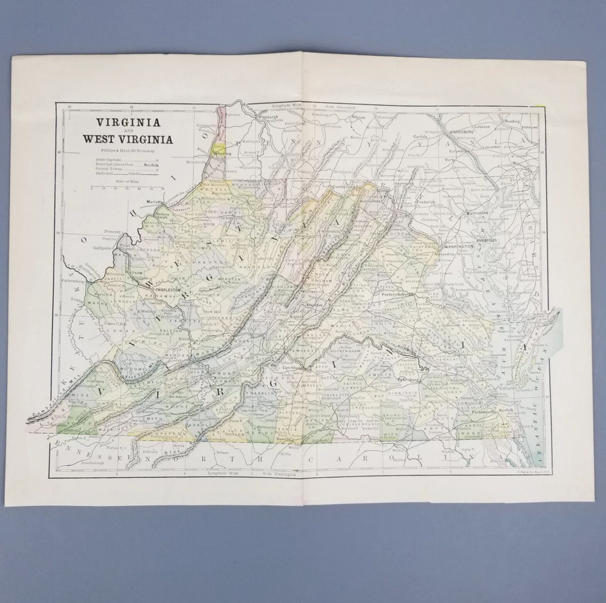 1882 Virginia West Virginia Map Norfolk Richmond Charleston