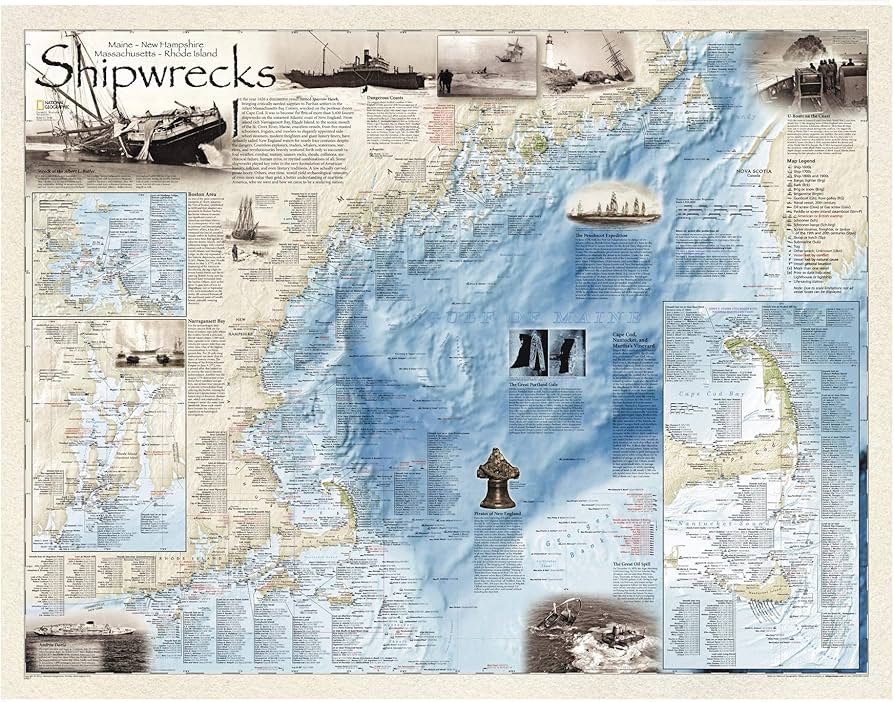 National Geographic: Shipwrecks of The Northeast Wall Map 36 x