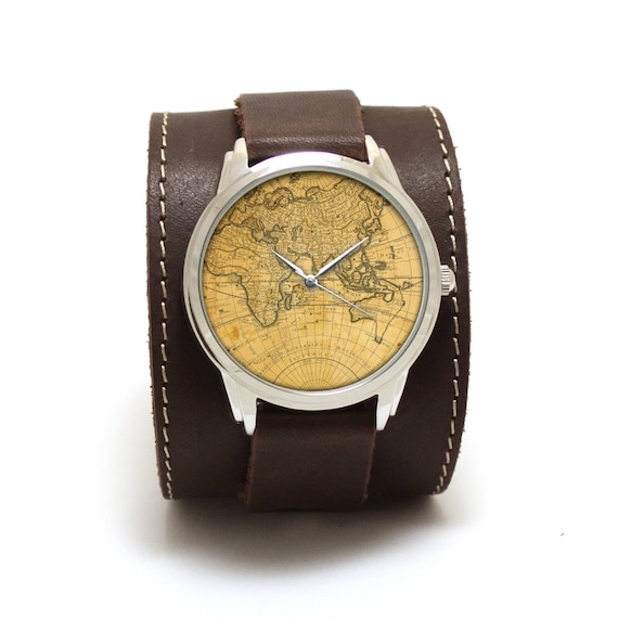 World Map Vintage Watch Leather, World Map Watch, Vintage Map